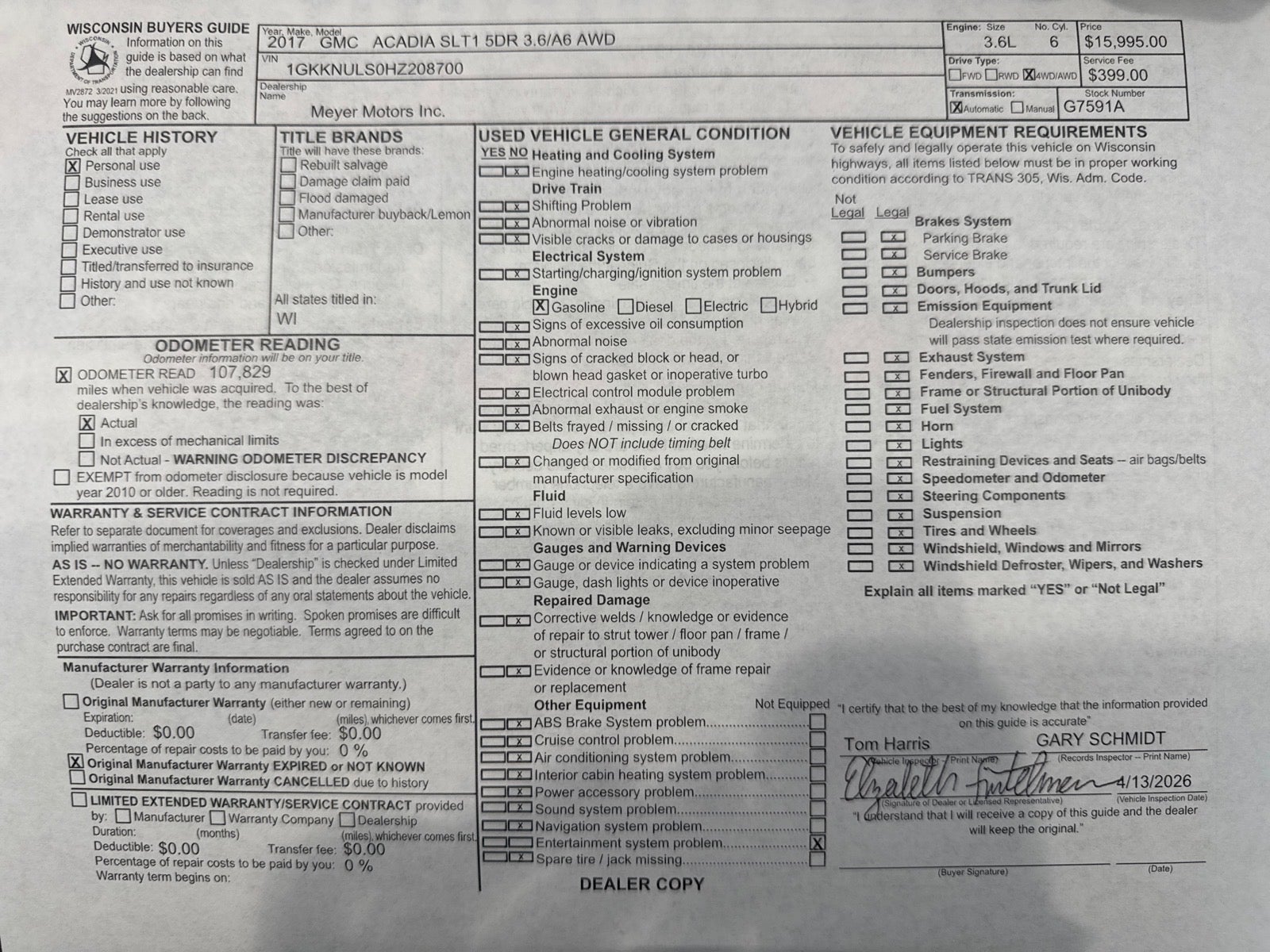 - Fair Market Value: $15,995